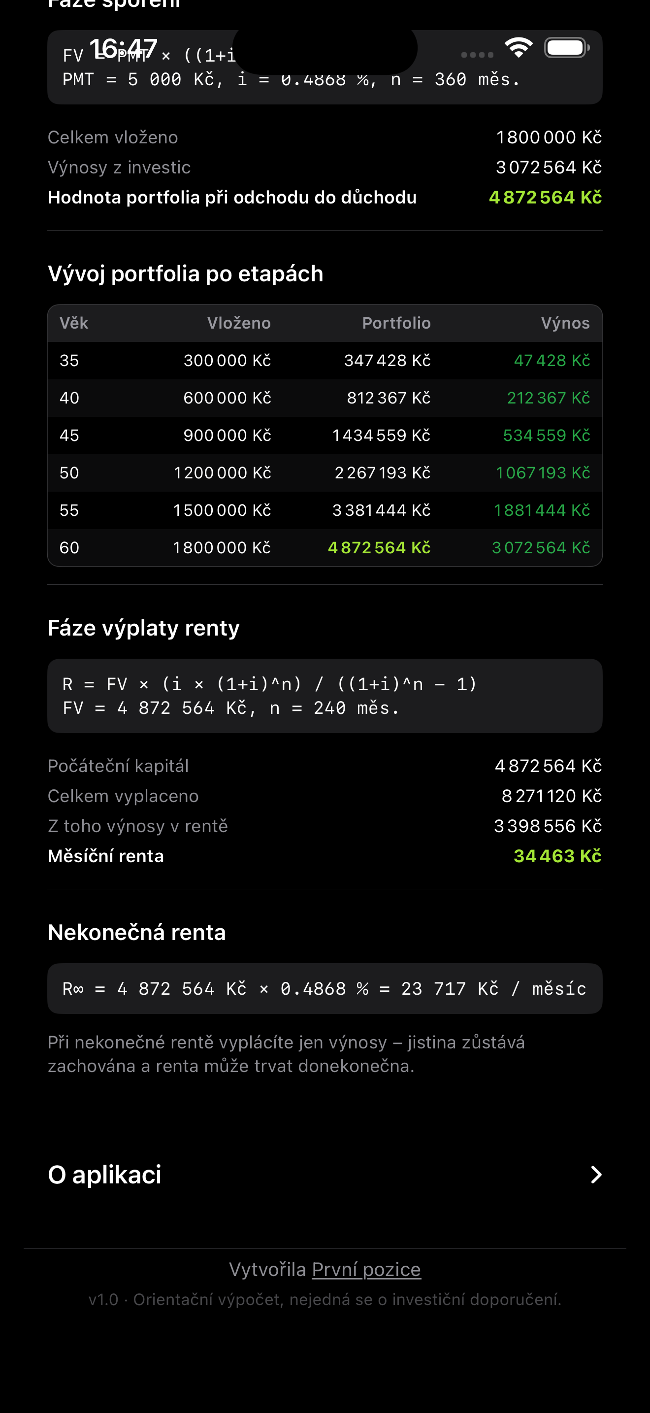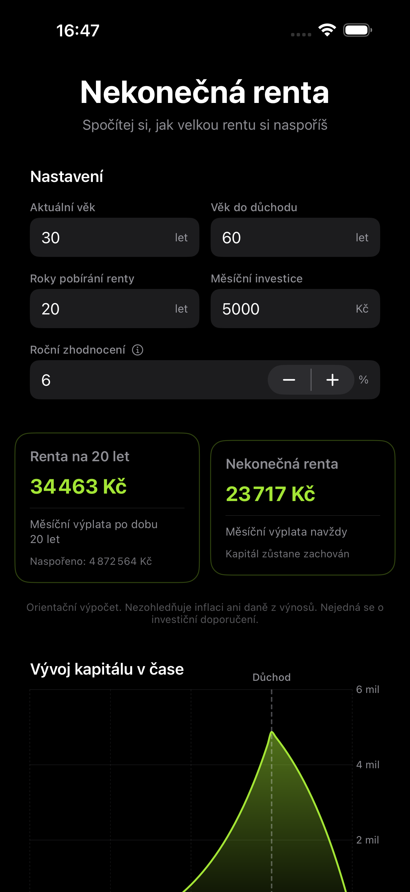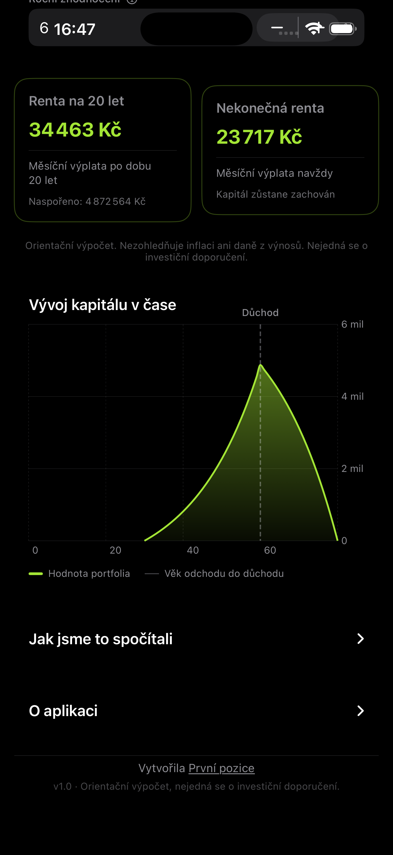 Aplikace pracuje s orientačním modelem a nezohledňuje inflaci ani daně z výnosů.